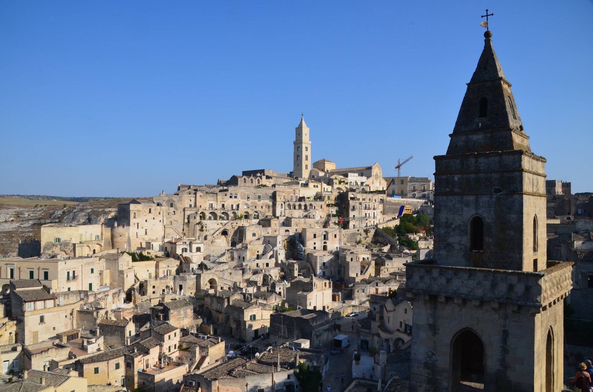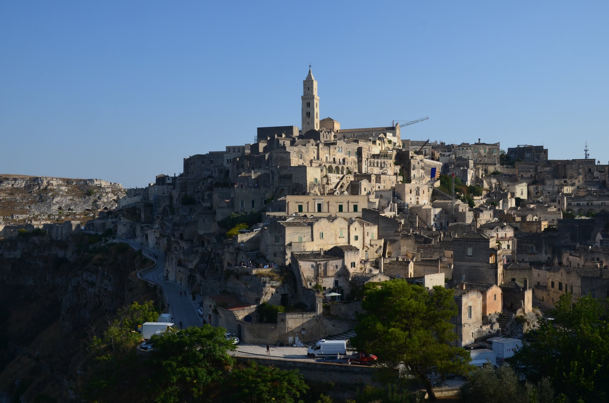 Matera ist eine der ältesten und außergewöhnlichsten Städte der Welt, eine Stadt in einer Schlucht. Die Häuser (Sassi) sind Höhlen im Tuffstein. Zwischen den Häusern sind zahllose Höhlenkirchen zu bestaunen. Lass sich durch die Gassen von Matera treiben. Als wir vor Ort waren, war die halbe Stadt gesperrt wegen Dreharbeiten für einen James-Bond-Film.