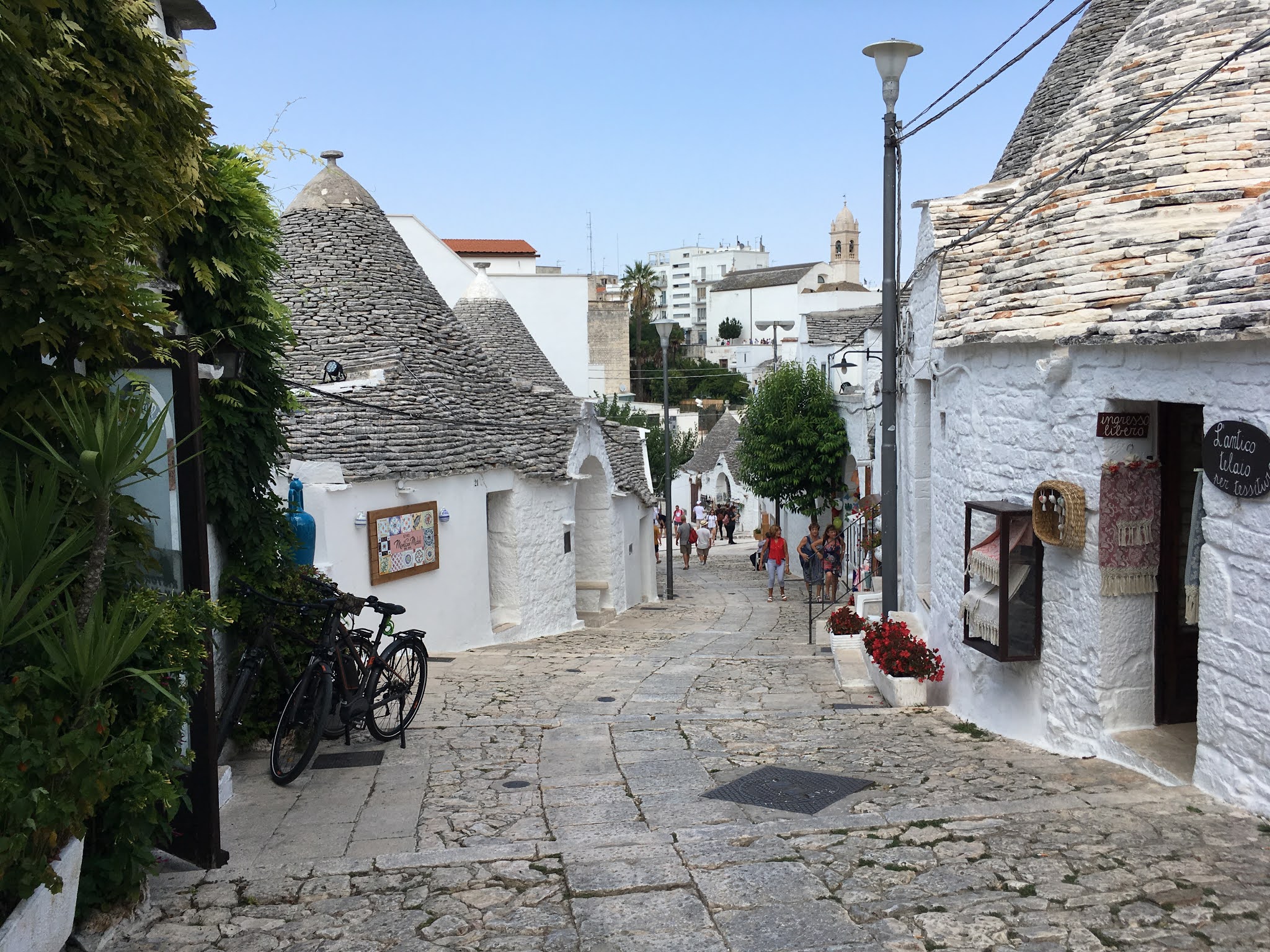 Alberobello Trulli ist die Heimat der berühmten Trulli-Häuser – touristisch, aber auch sehr fotogen. Trulli sind kleine, meist weiß getünchte runde Steinhäuser, deren Steindächer nach oben hin kegelartig verlaufen – wie eine Zipfelmütze.