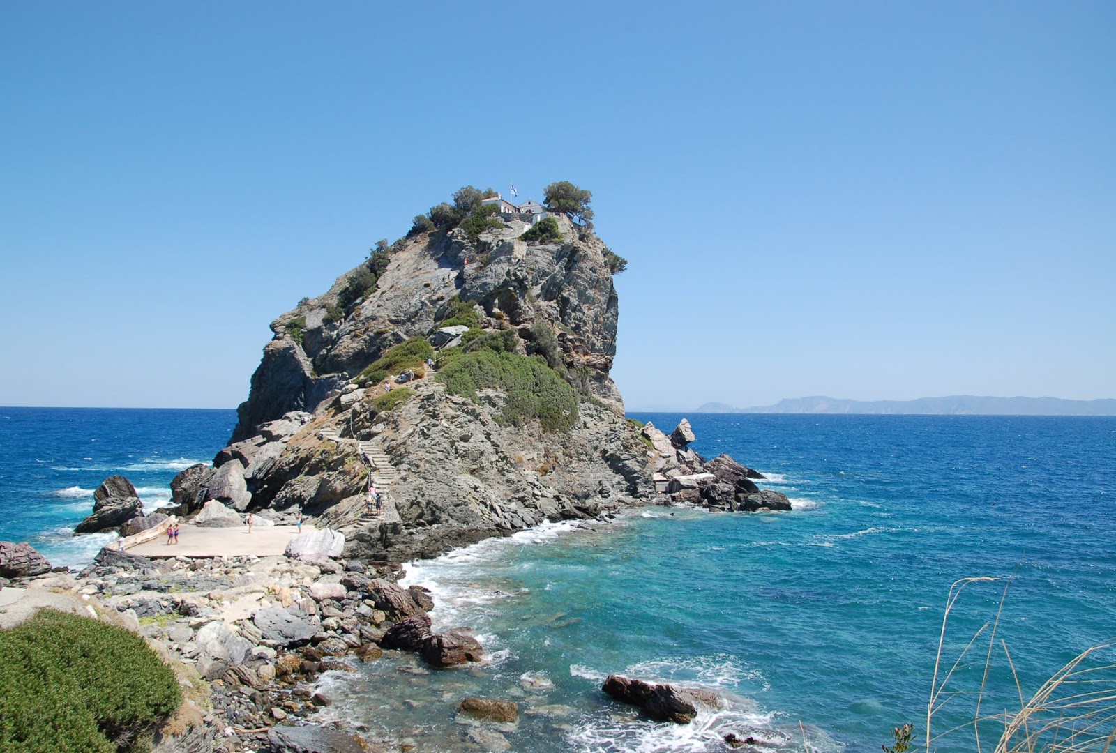 Spaziergang durch die Horta von Skopelos Ein malerisches Labyrinth aus kleinen engen Gassen, weiß getünchten Häuser und ein buntes Meer an Blumen – hier scheint die Zeit still zu stehen. Perfekt um abzuschalten und zum entspannen. Überaus leckere einfache griechische Küche und guten Rotwein findest du in einem der vielen hübschen Restaurants direkt am Hafen. Besuch der Kirche von Agios Ioannis Kastri an der Nordküste in Höhe von Glossa auf einem vorgelagerten Felsen liegt die aus dem Film “Mama Mia” bekannte Kirche. Vom Kirchgarten hast du einen herrlichen Blick über das azurblaue Meer, toller Blick bereits bei der Anfahrt. Entspannen an einem der wunderschönen Strände einer schöner als der andere- am besten alle ausprobieren: Kastani Strand, Strand von Stafilos oder Strand Limonari