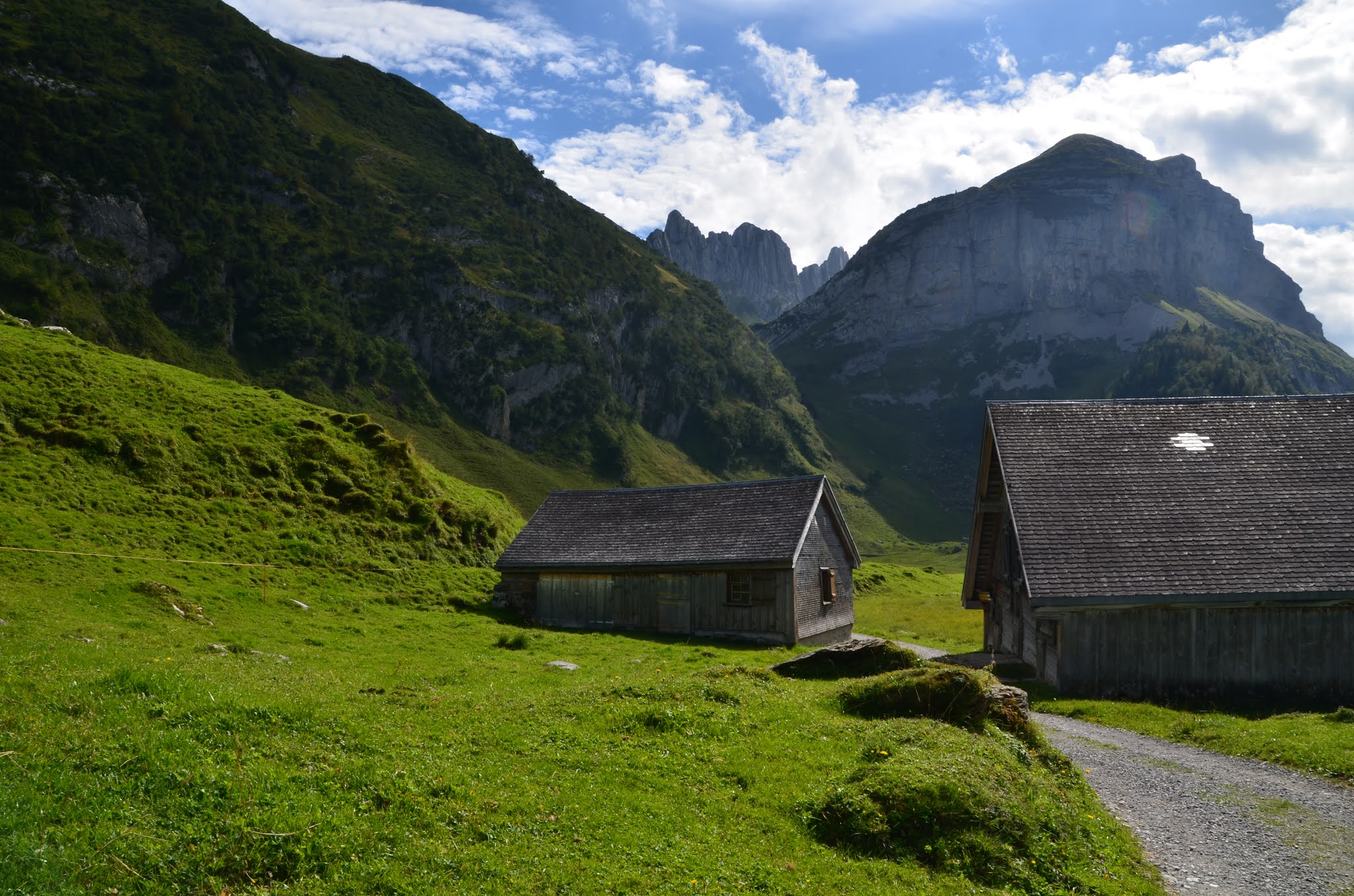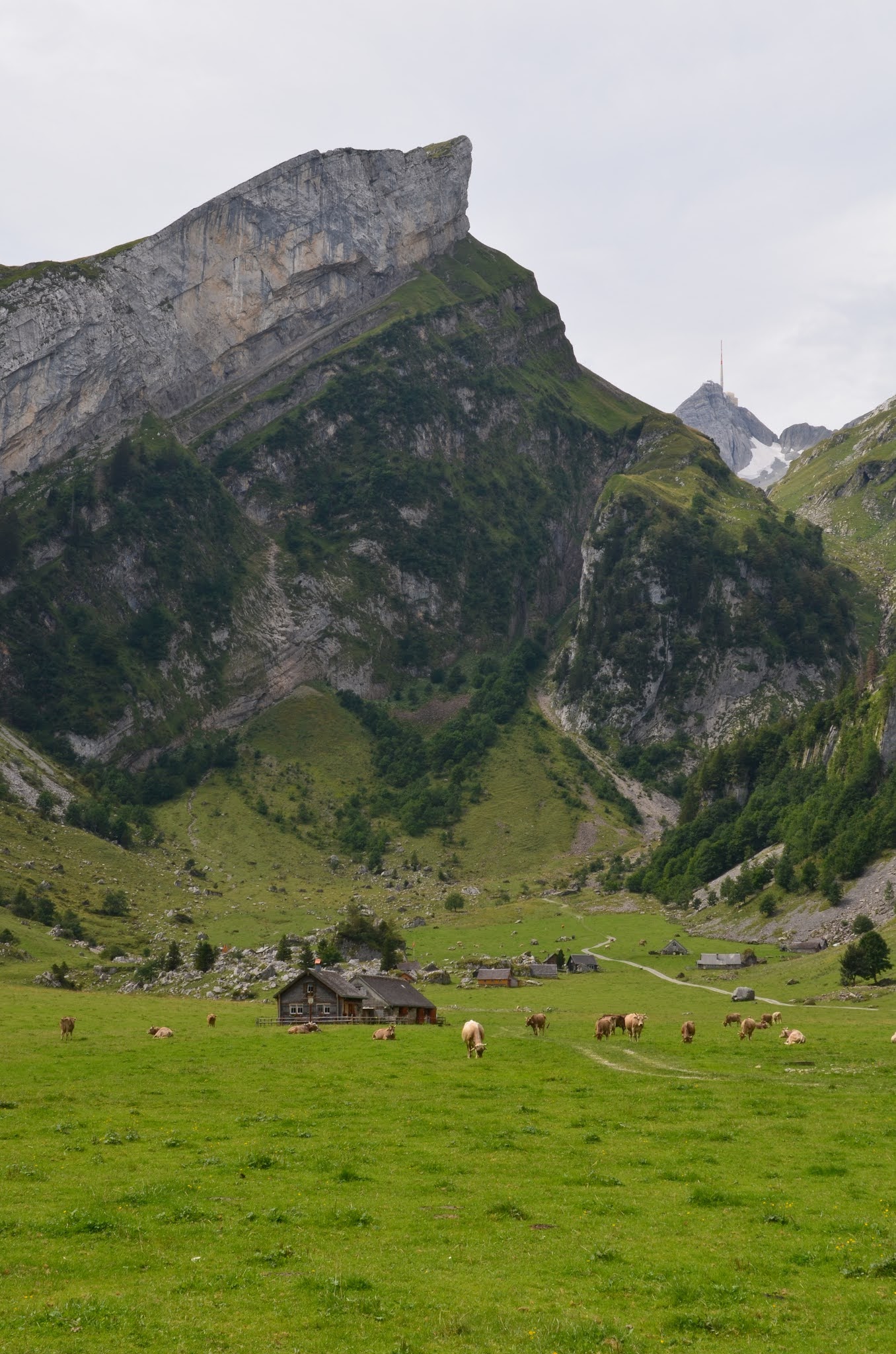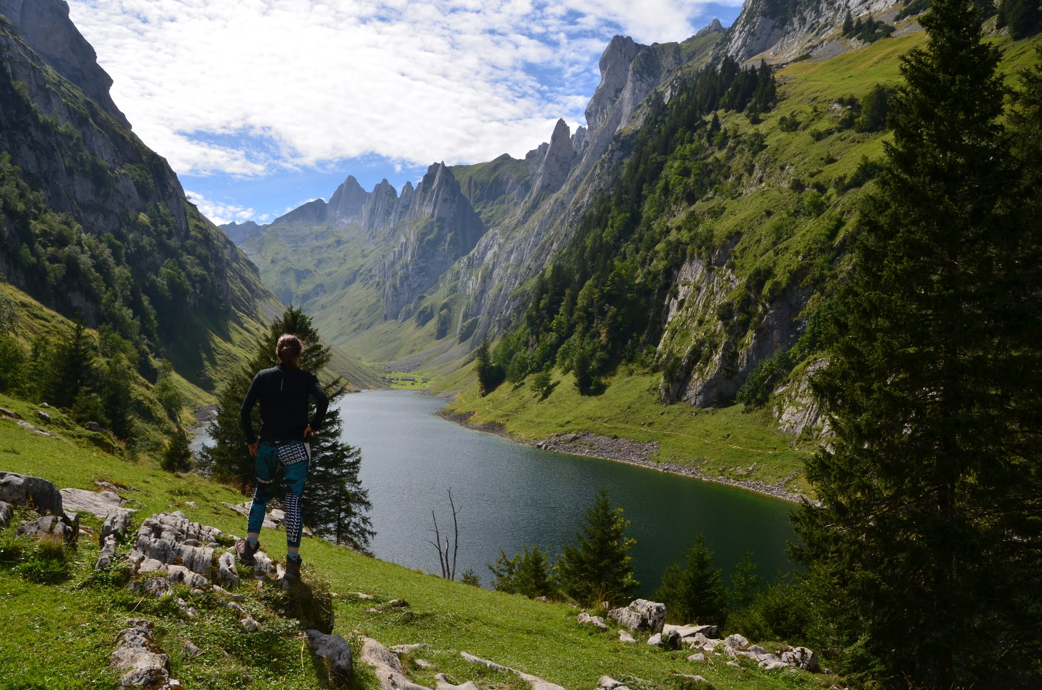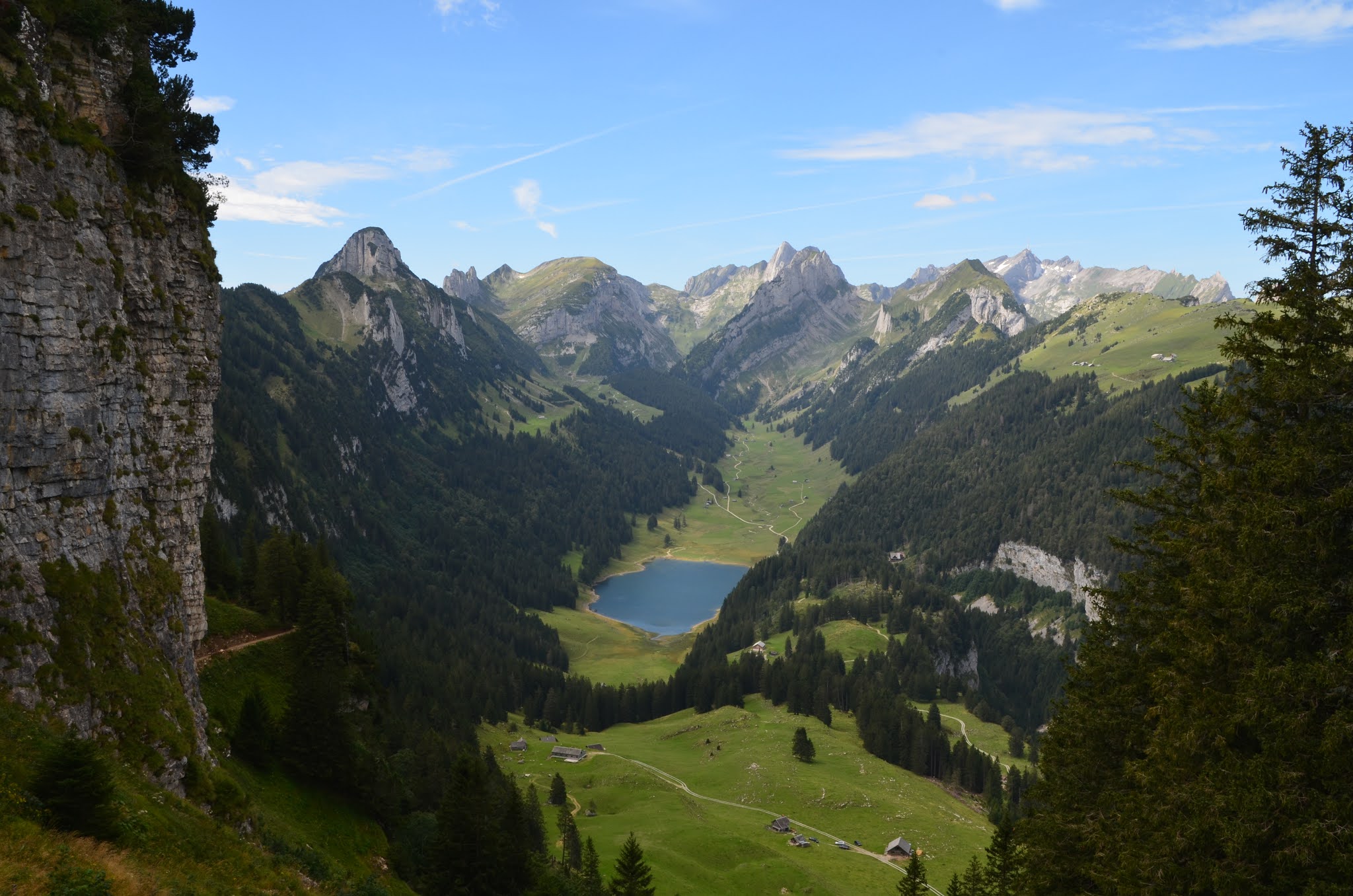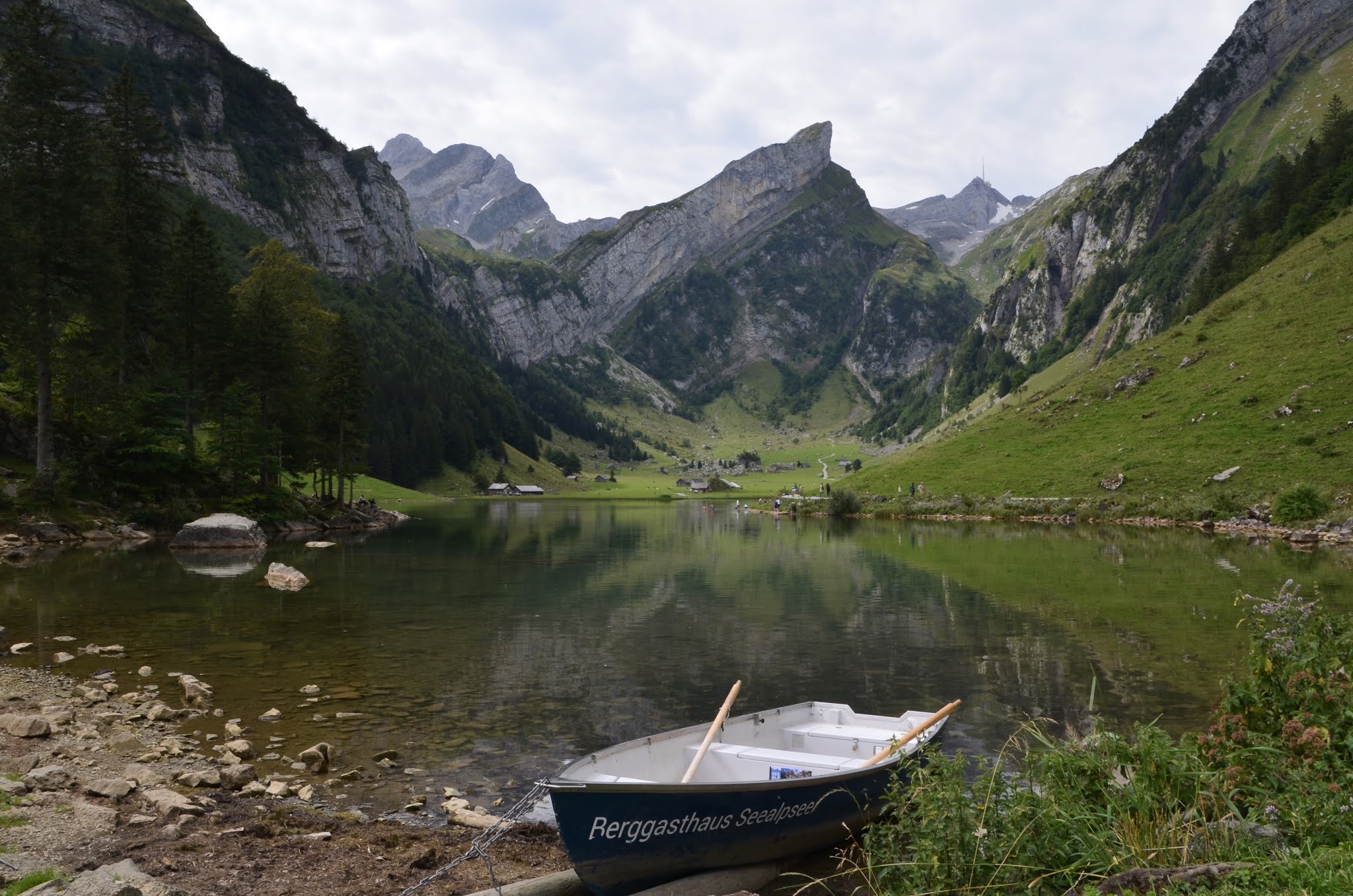 Mit der Bergseilbahn geht es ab der Talstation Wasserauen hinauf zur Bergstation EbenalpVon der Bergstation führt der Weg mit schönen Ausblicken auf das Appenzellerland durch  prähistorischen Wildkirchli-Höhlen zum, an die steile Felswand gebauten, Berggasthaus Aescher. Von hier führt ein steiler Bergweg stets hinab zum wunderschönen Seealpsee, eingebettet in eine imposante Bergwelt.  Verstreut auf der Seealp liegen viele kleine Alphütten und die Seealpkäserei. Je nach Saison bietet der kleine Familienbetrieb bis zu sieben verschiedene Käsesorten an, traumhaft guter Alpchäs von „cremig-mild“ bis „sehr würzig“. Die perfekte Krönung unseres kleines Picknick am Seeufer mit Brot, Trauben, Wein und Wasser.